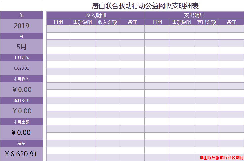 2019年5月唐山联合救助行动公益网收支明细表
