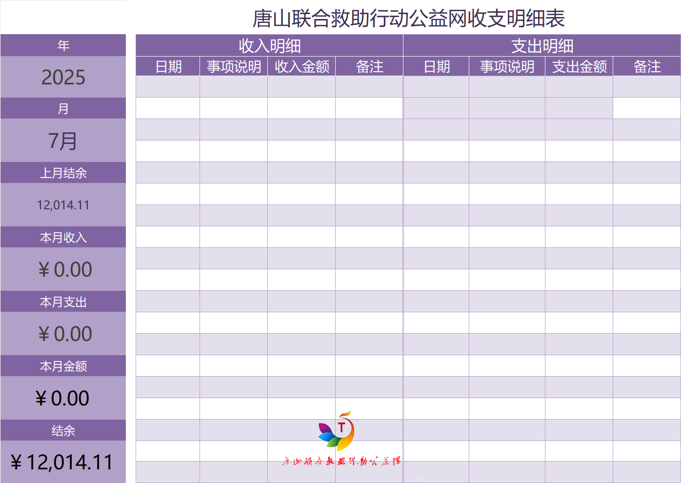 2025年7月唐山联合救助行动公益网收支明细表